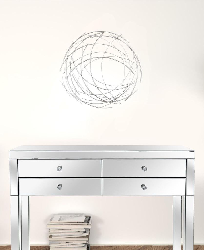 The silver metal abstract round hanging wall art decor is the perfect decorative accessory for your home. Hang on your wall to add some up to modern and contemporary fashion and decoration. This unique abstract overlapping wall art will instantly liven up your space. 25.5" around, this fun piece brings dimension to your walls. 25.5-inch H x 25.5-inch W x 1-inch D