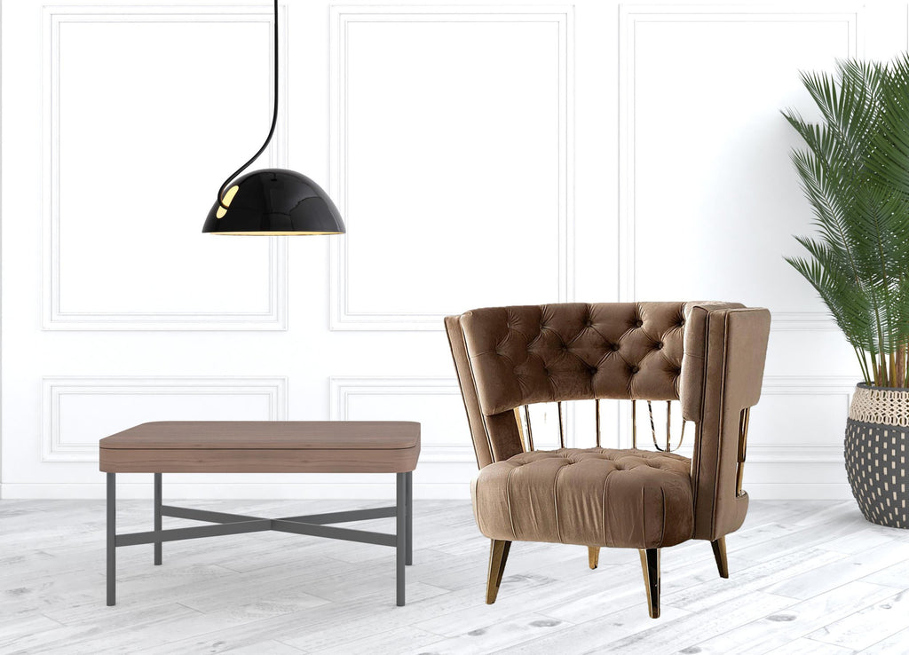 38" Dark Beige Velvet And Gold Exposed Back Accent Chair