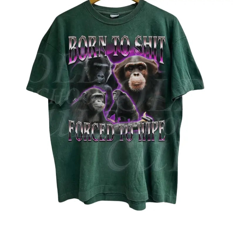 Born To S... Forced To Wipe 90s Bootleg T-Shirt, Retro Ape Meme Shirt, Funny Gift For Friends, Funny Graphic Shirt, Washed Shirt, Weird Tees Menswear