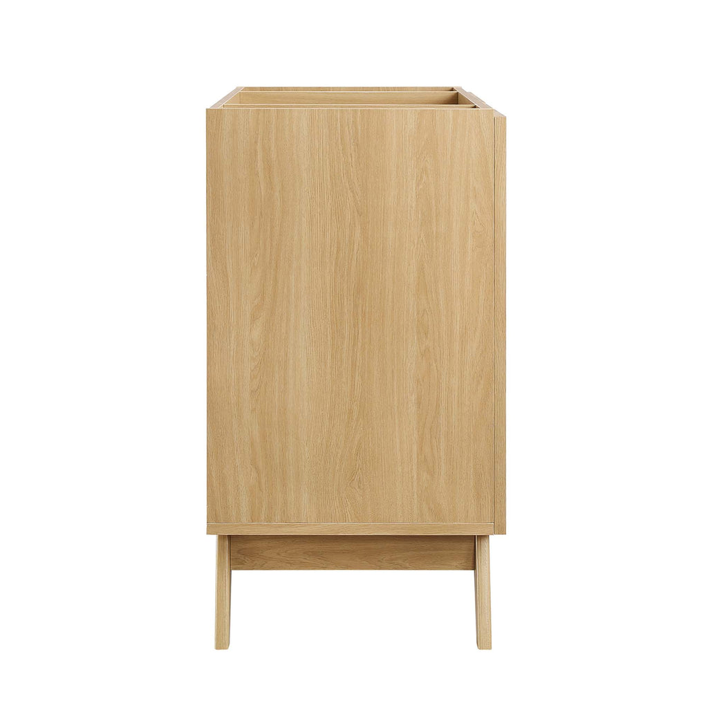 Introduce refreshing style to your restroom with the Soma 36� Bathroom Vanity Cabinet. Showcasing a beautiful rattan weave on the cupboard doors, this vanity cabinet brings organic aesthetics and modern functionality to any bathroom or powder room. Crafted from durable MDF and particleboard with a natural wood grain finish, this cabinet features an adjustable shelf, providing easy customization for arranging towels, toiletries, and bathroom necessities. Complete with metal doorknobs with a brushed gold finish and soft-close hinges, this bathroom vanity cabinet is designed for quiet and effortless functionality. Resting on splayed legs, the Soma Bathroom Vanity includes non-marking foot caps to protect flooring. Assembly required. Fixtures and sink basin not included. Weight Capacity: 200 lbs. Set Includes: One - Soma 36� Bathroom Vanity Cabinet (Sink Basin Not Included)