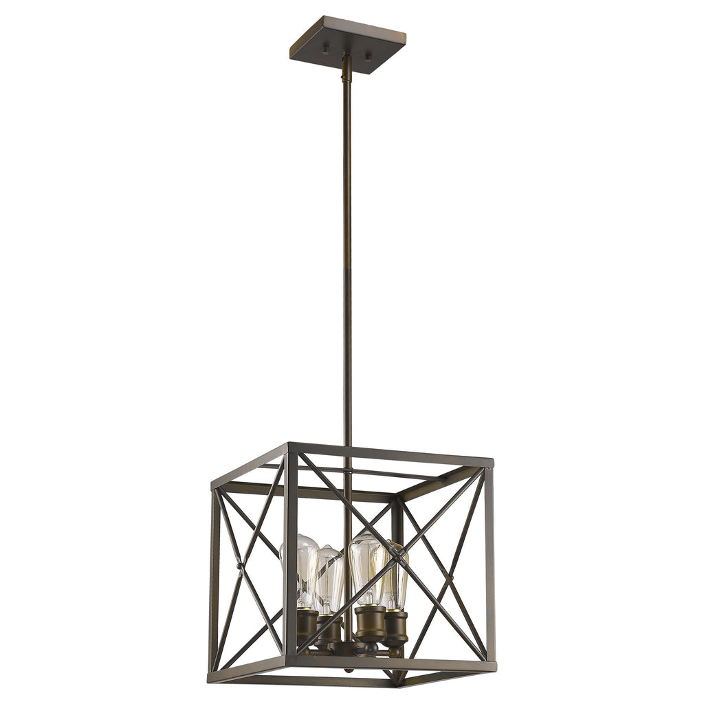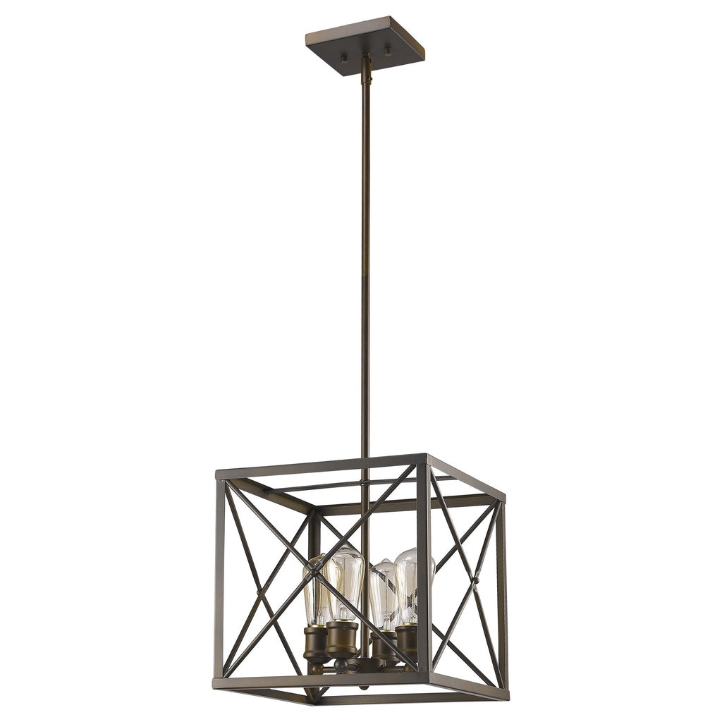 Brooklyn 4-Light Oil-Rubbed Bronze Pendant With Metal Framework Shade