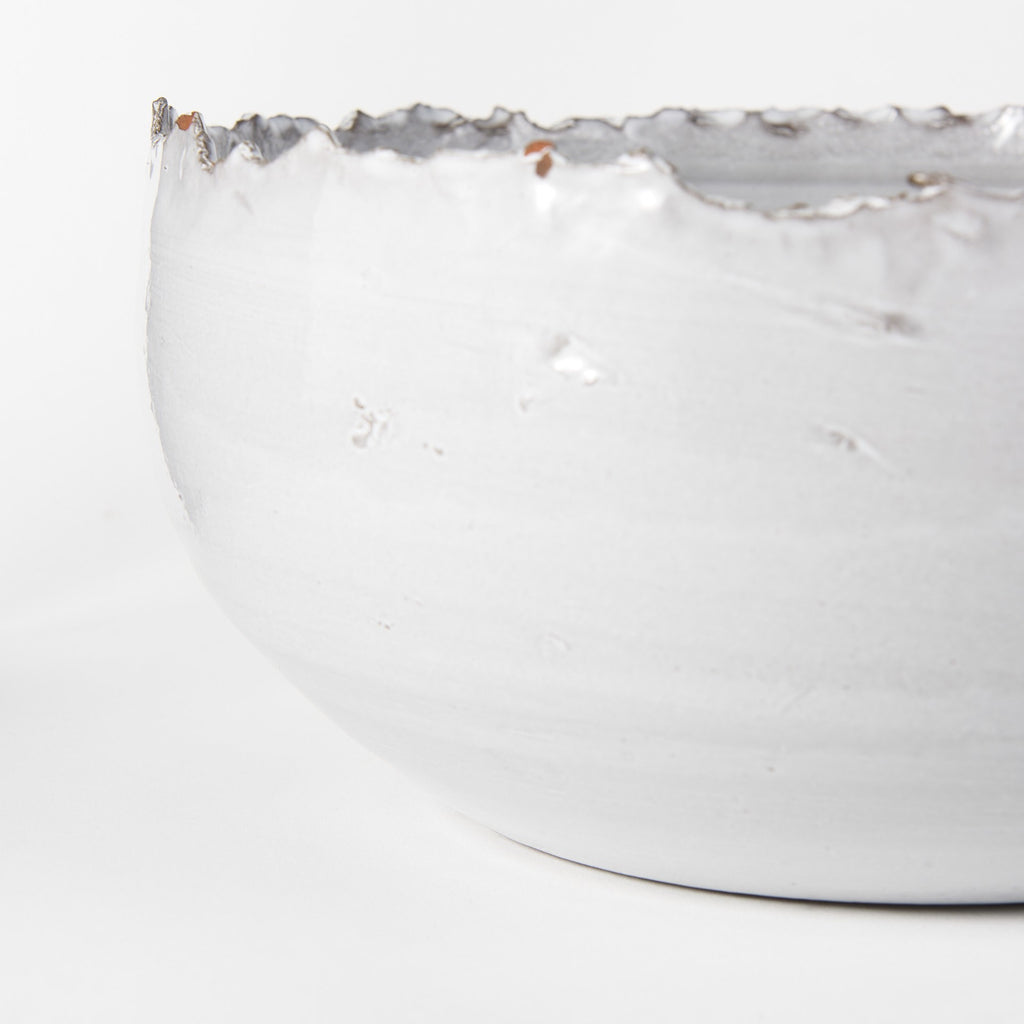 This whimsical Antiqued Gold Metal Bowl with Webbed Feet Stand is the perfect way to add a statement piece to your home. This bowl is made from metal and has been finished to a burnished gold color with a gray tone shining through. The bowl on top has a very simple shape and offers great deep shape. Underneath this bowl there are three metal webbed feet that have details on them and complete the fun look of this bowl. Even though the design of this bowl is very unique, the muted and neutral colorway makes it perfect for formal decor as well. 7" H x 12.75" W x 12.75" D