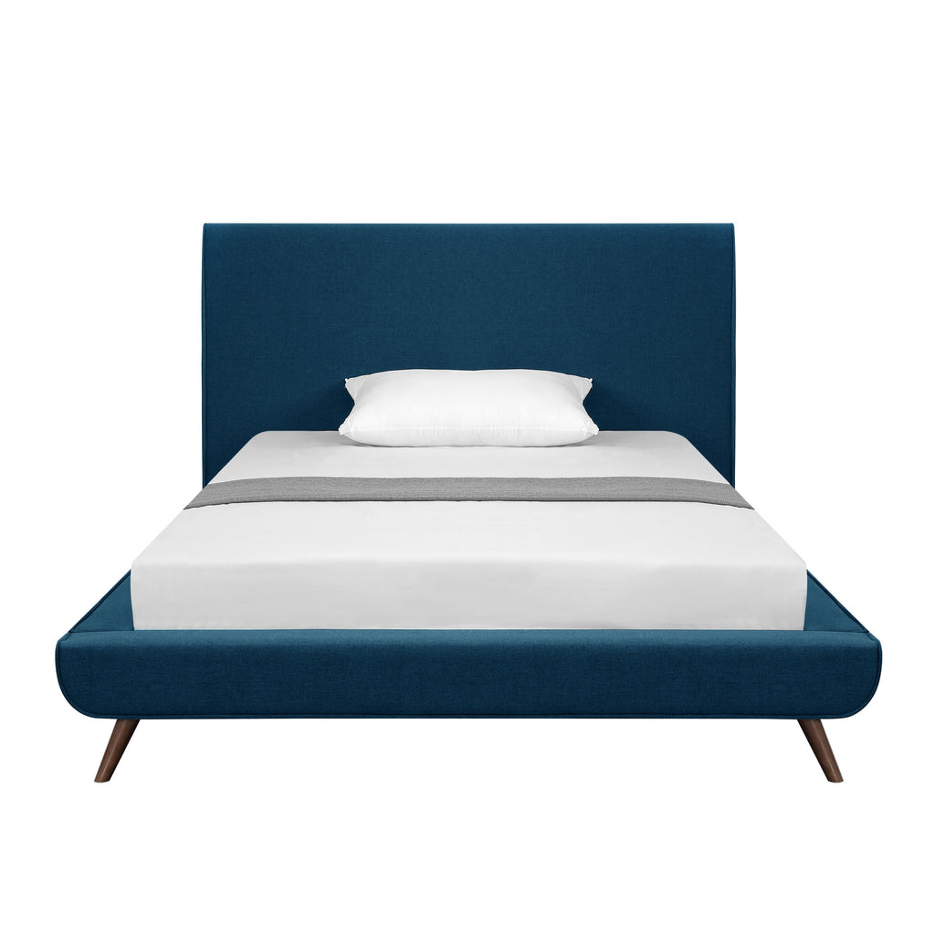 Denim Blue Solid Wood Full Upholstered Linen Bed