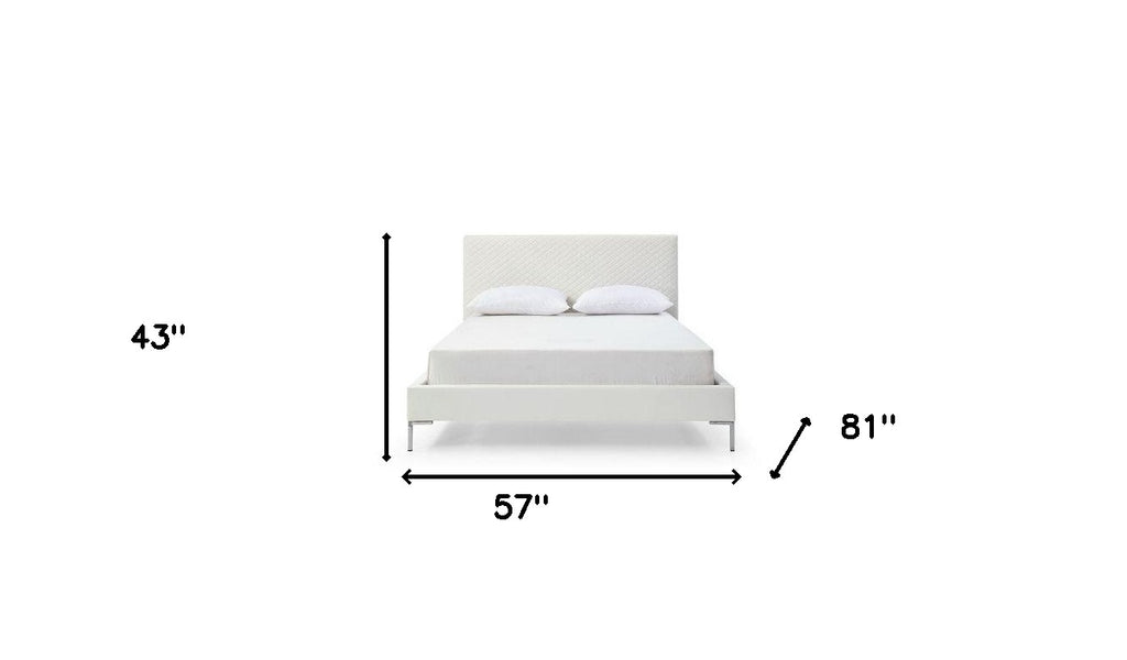 The full white upholstered faux leather bed is the ultimate combination for your bedroom of comfort and style. Partially upholstered in a ,white rugged faux leather, this bed brings a unique and designer perspective to your space. Built to last, this piece not only looks good but reflects high quality craftsmanship from top to bottom. This bed is the perfect way to make your bedroom comfortable and inviting. 43" H x 57" W x 81" D