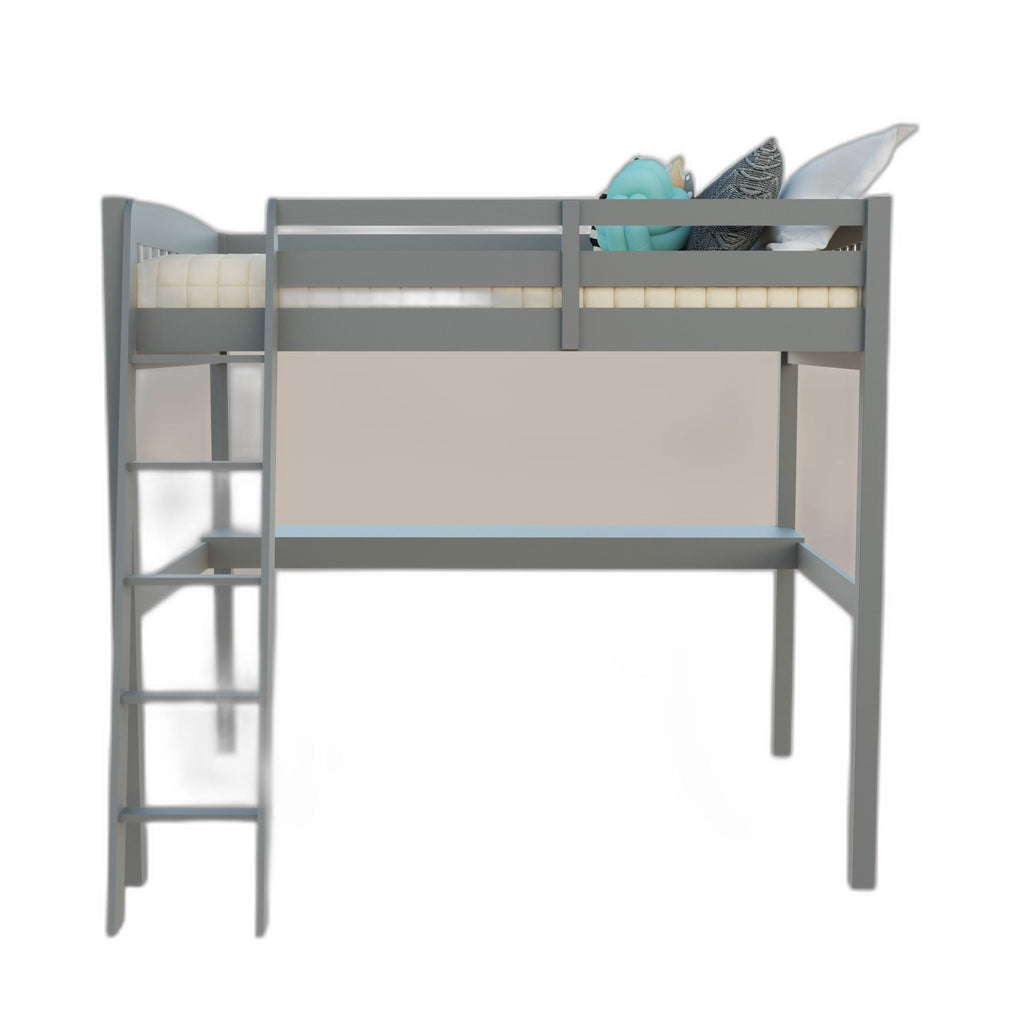 This Gray Solid Wood Full Double Size Loft Bed with Desk and Storage is sure to bring a stylish, space saving and fun vibe to your child's bedroom. High quality construction of solid pine in a loft style bed combines with a built-in ladder and an under area that includes tabletop surface area desk, and a drawer for storage. The open area allows room for play and or additional storage as you can add in a bookcase, small dresser, or bins to keep everything neat and tidy. This modern design loft bed combines simple and good looking style with practicality and is space friendly. 72" x 74.8" x 80"