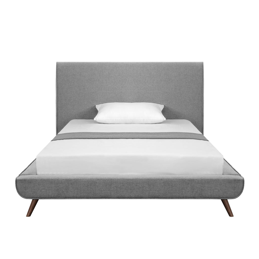 Add a luxuriously appointed bed that will help you create an oasis of comfort and relaxation in your home with this gray solid wood full upholstered linen bed. Fully upholstered in a gray rugged linen, this bed brings a unique and designer perspective to your space. We spend so much time in our bedrooms, thus making quality craftsmanship and good looks vitally important. This bed is the perfect way to make your bedroom comfortable and inviting. 45.3-inch H x 85.8-inch W x 65-inch D