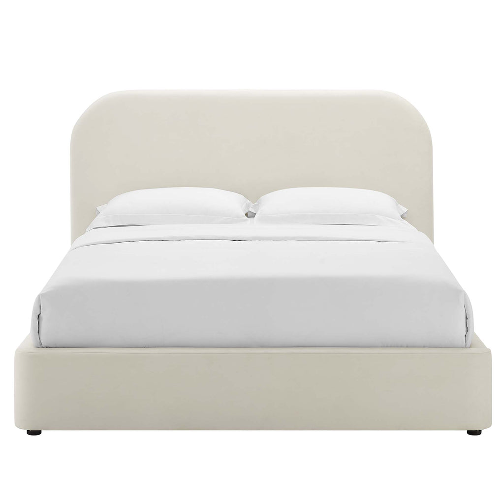 Delight in the upscale serenity of the Keynote full size bed frame. Cloaked in a stain-resistant performance velvet and filled with dense foam, this full size upholstered bed adapts to various decorative themes, making it an excellent choice as a spare bed or primary bedroom bed. Boasting a gently curve shaped headboard, it features a cloud bed frame design that subtly extends beyond the mattress's edge. The robust MDF construction and wooden slat base of the Keynote velvet upholstered platform bed frame makes the use of a traditional box spring redundant, making it compatible with all types of mattresses, such as memory foam, innerspring, latex, and hybrid. This double bed frame stands on practical and durable LVL legs, equipped with non-marking caps to protect floors. The soft bed frame of the Keynote full size velvet bed, complete with an elegantly upholstered headboard, offers a modern and contemporary upgrade to any bedroom setting. Mattress not included. Assembly required. Full Size Bed Frame Weight Capacity: 800 lbs. Set Includes: One - Keynote Curved Full Platform Bed