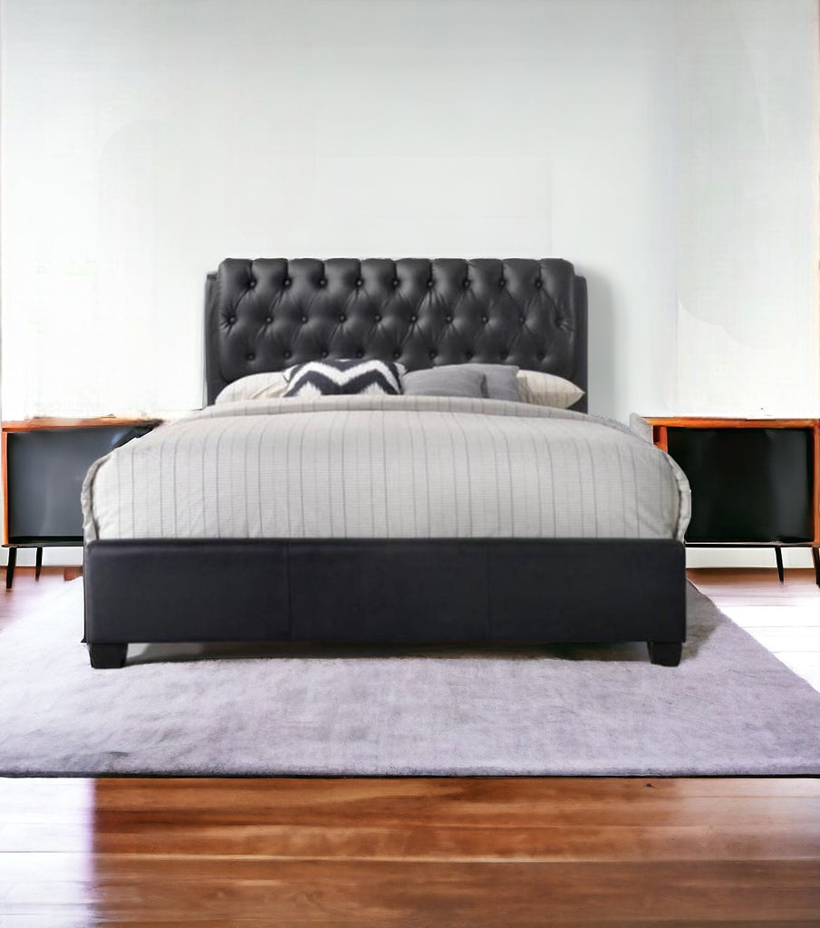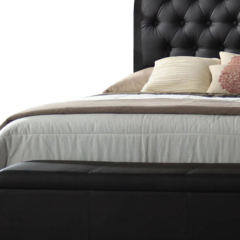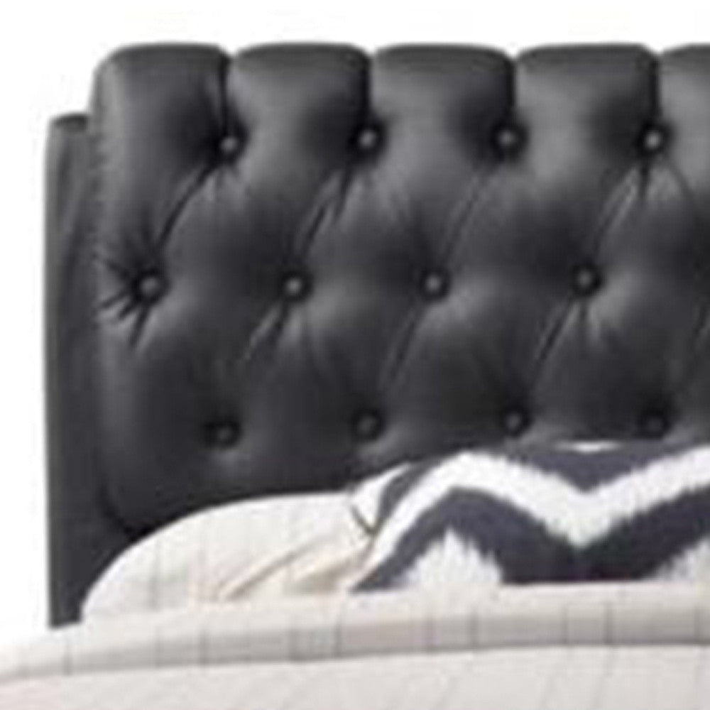 King Tufted Black Upholstered Faux Leather Bed With Nailhead Trim