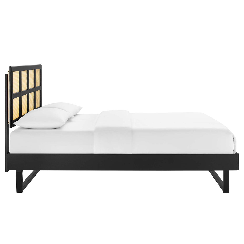 Sidney Cane and Wood King Platform Bed With Angular Legs