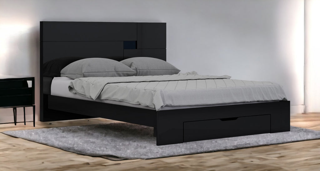 Solid Wood King Black Bed