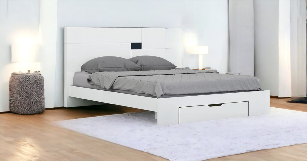 the ultramodern king bed is a multi-functional bedroom necessity designed to satisfy your high taste. it is the perfect complement with vintage inspired and wood design home decor. its brilliant combination of the best of hardware materials and metal is a clear indication that it is built to last. whats more? it also features a unique one under bed drawer you can use as additional storage space. this contemporary style comes with an easy assembly, and provides maximum ease. it is sturdy and superbly finished with sophistication and eagle eye precision.