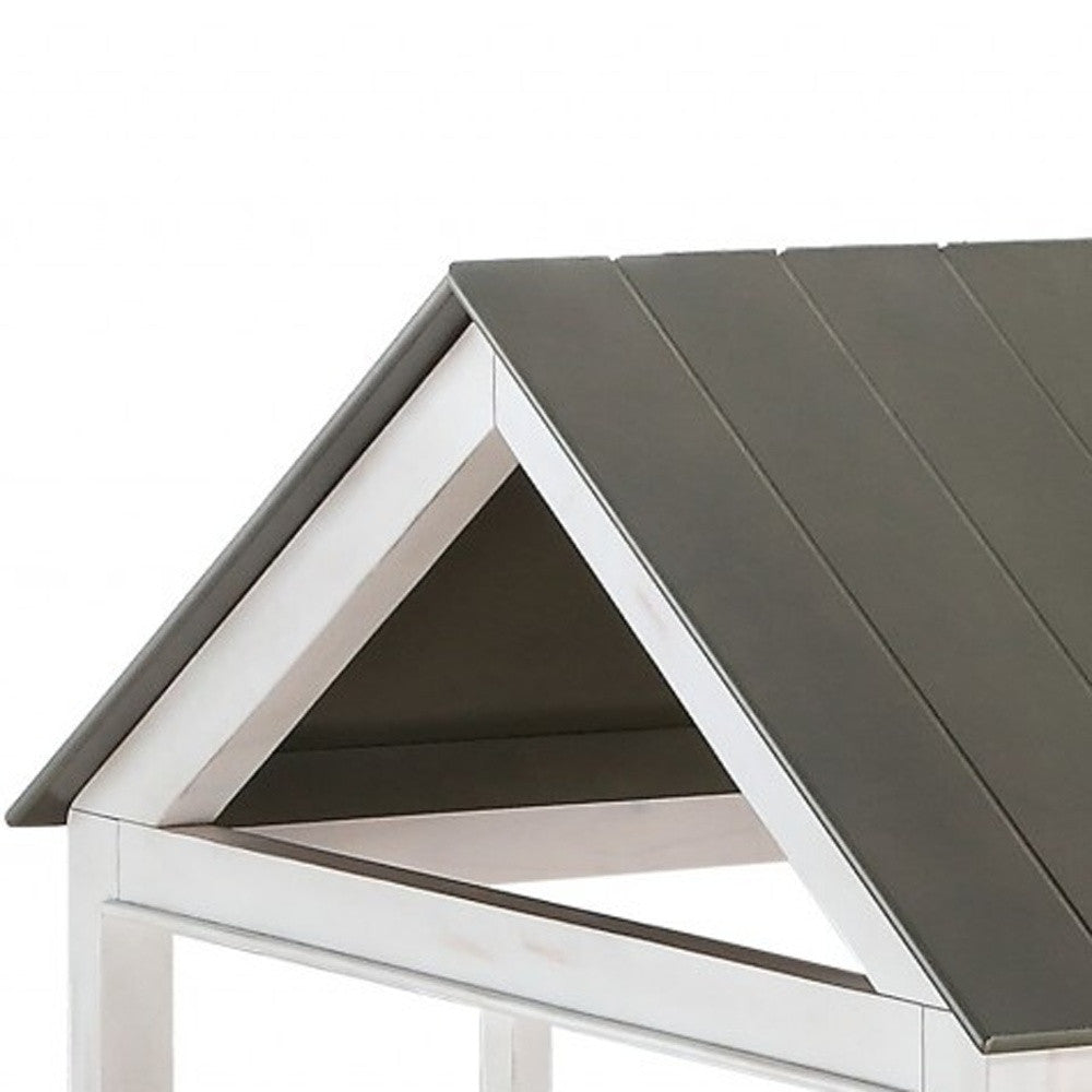 Your children will adore the magical bed that evokes the spirit and appeal of an outdoor tree house. This unique bed sits inside a classic house frame, with beadboard panel headboard, footboard, and roof and features eight open windows in a weathered white and washed gray finish. This artistically imagined bed is expertly designed to withstand the test of time and provide your little ones with enduring comfort and adventure. See creativity flourish as kids play in this house-inspired bed. This item does not come with the trundle