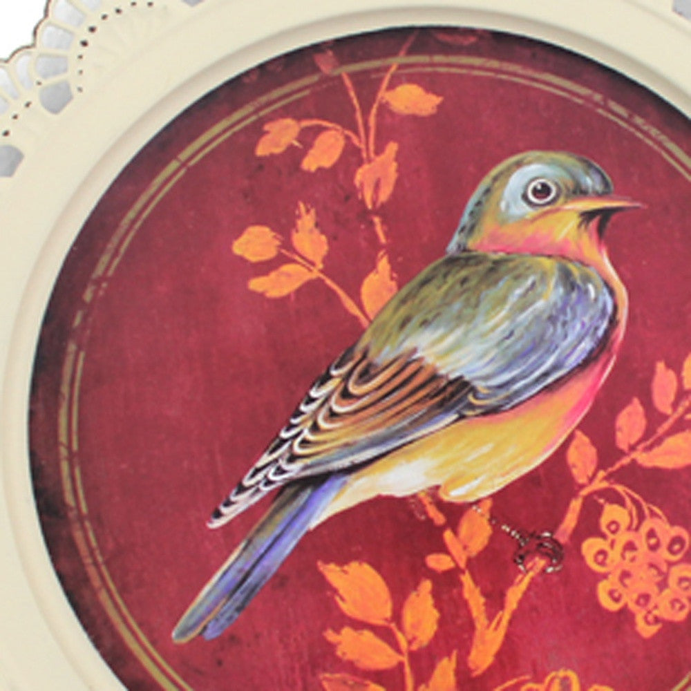 Set of Four 13" X 13" Brown and White Metal Bird Flower Wall Decor