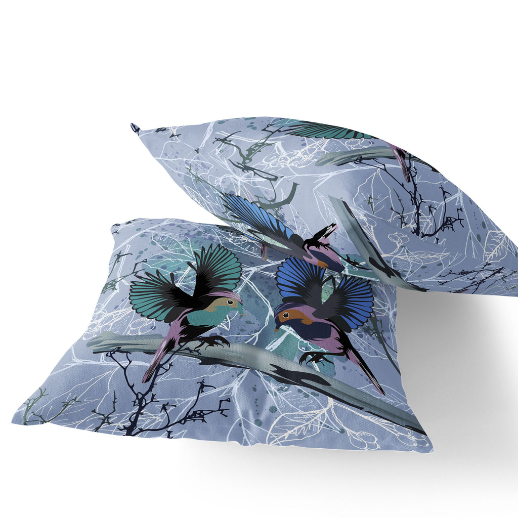 Set of Two 16" X 16" Blue Bird Blown Seam Indoor Outdoor Throw Pillow