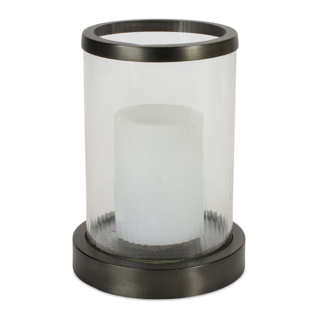 This 8" black flameless tabletop hurricane candle holder is perfect for creating an elegant atmosphere on your tabletop or mantel. Pair with your favorite flameless candles and never worry about blowing them out before bed. Add an extra pop of personality to every corner of your home with this gorgeous candleholder Candleholders are a decorative accent on their own. They are also an attractive way to turn a simple candle into a piece of décor on its own. 8.25" H x 6" W x 6" D