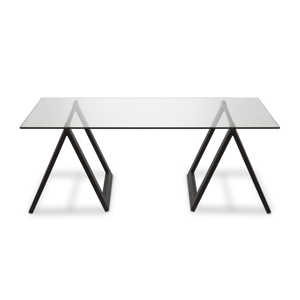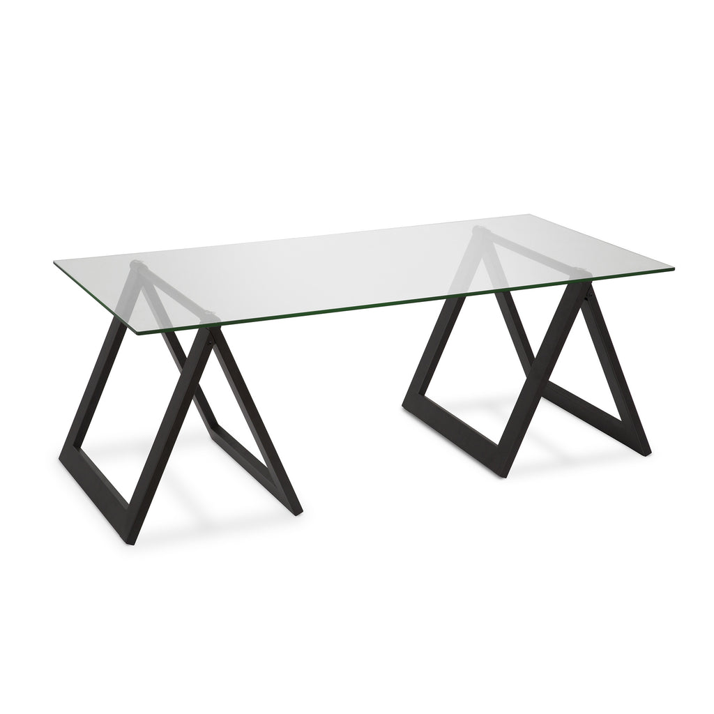 Make a statement with the 46-inch black glass and steel coffee table and infuse a dash of character and personality into your space. A solid black steel frame is finished off with a matching black glass top, giving this table a chic monotone look. This classic rectangular table will be a great accent in any room it has a fresh design that will definitely breathe some fresh air into your interior. This coffee table is the sturdy, reliable and stylish answer to your living room needs. 17-inch H x 46-inch W x 22-inch D