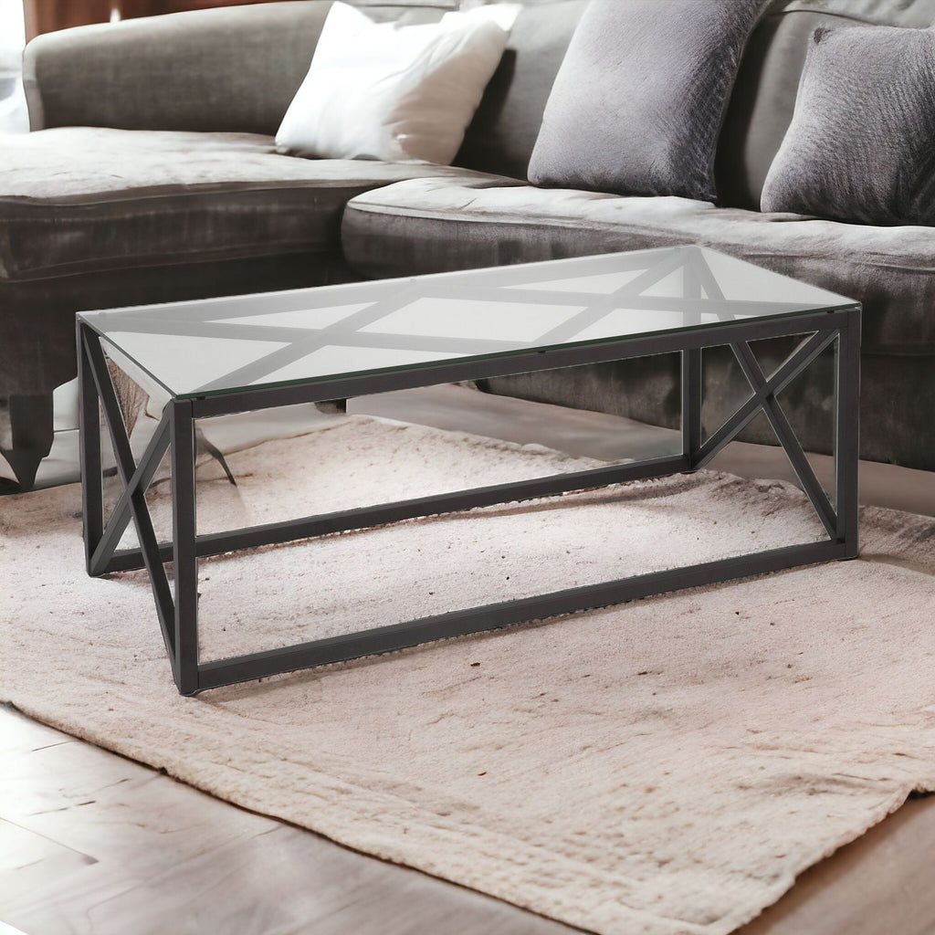 Give your living room, family room, or office the perfect anchor piece with this 46-inch black glass and steel coffee table. This table features an updated monotone color scheme with black as the main color on both the glass top and the steel base. This classic rectangular table will be a great accent in any room if you're looking for something that can fit into a living area, bedroom, or office, this coffee table is for you. This coffee table is the sturdy, reliable and stylish answer to your living room needs. 17-inch H x 46-inch W x 20-inch D