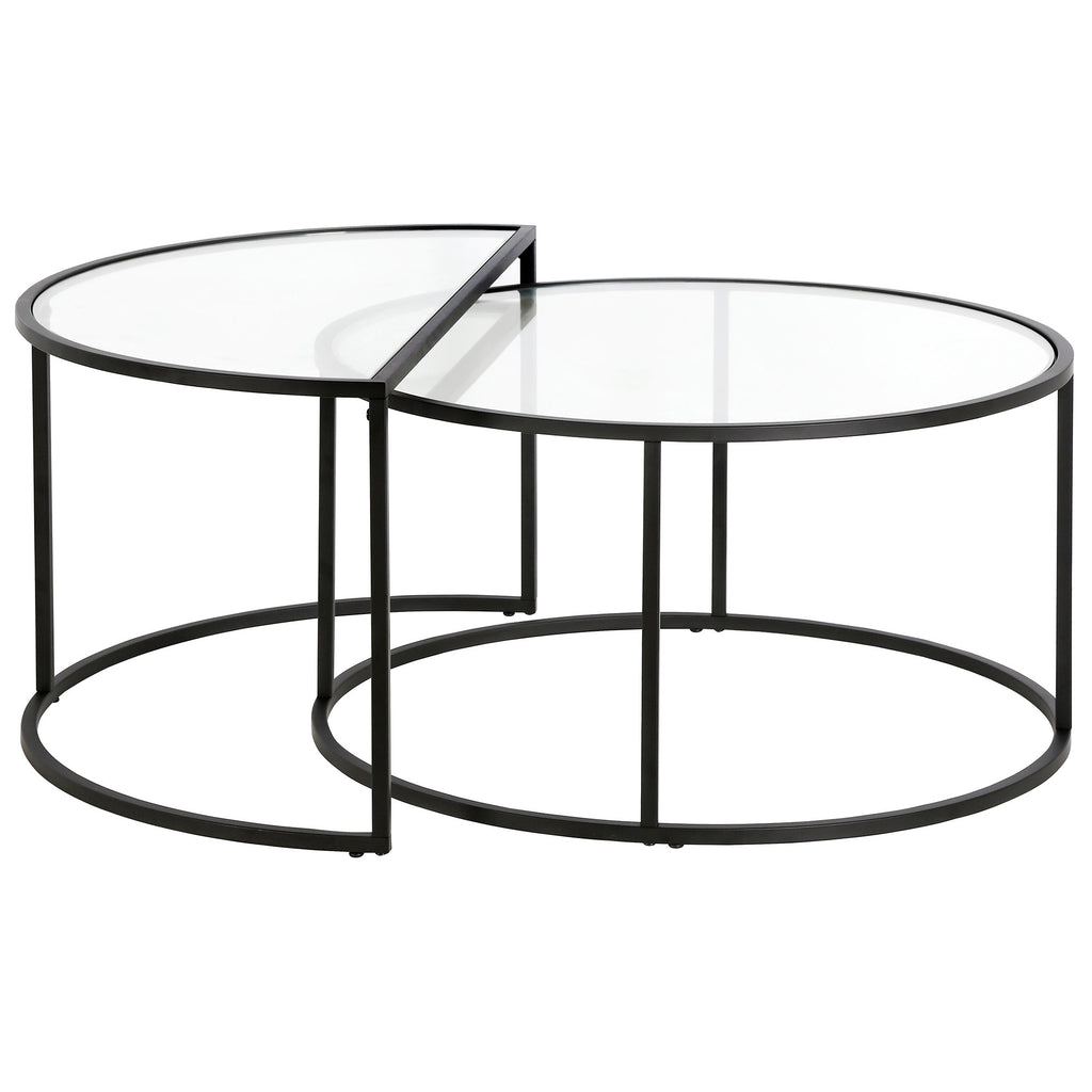 half circle nested coffee tables, circle nested coffee tables, nested coffee tables, glass half circle nested coffee, 33" black glass half circle Optimize your space with the set...