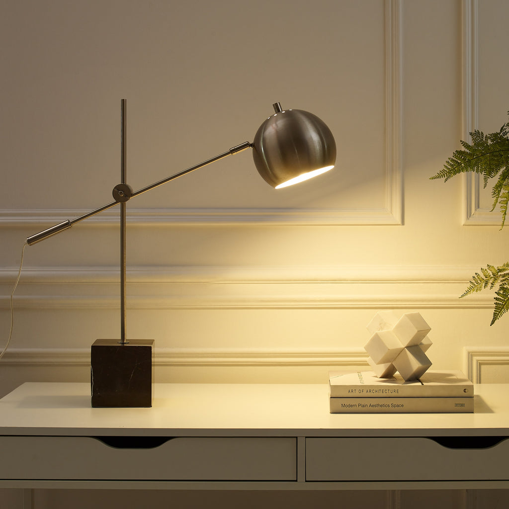 Truly a mix of design and functionality that doesn't compromise on style, this 23-inch gray iron desk table lamp with gray dome shade will be a great addition to your space. The base of this lamp is made of gray iron. The gray shade has a dome shape and is made from metal. This desk lamp provides 'task lighting' that will illuminate your working area for reading or writing. High quality design makes this a great lamp for not only lighting, but accenting a room with style. It is perfect for virtually any decor. 23-inch H x 27-inch W x 27-inch D