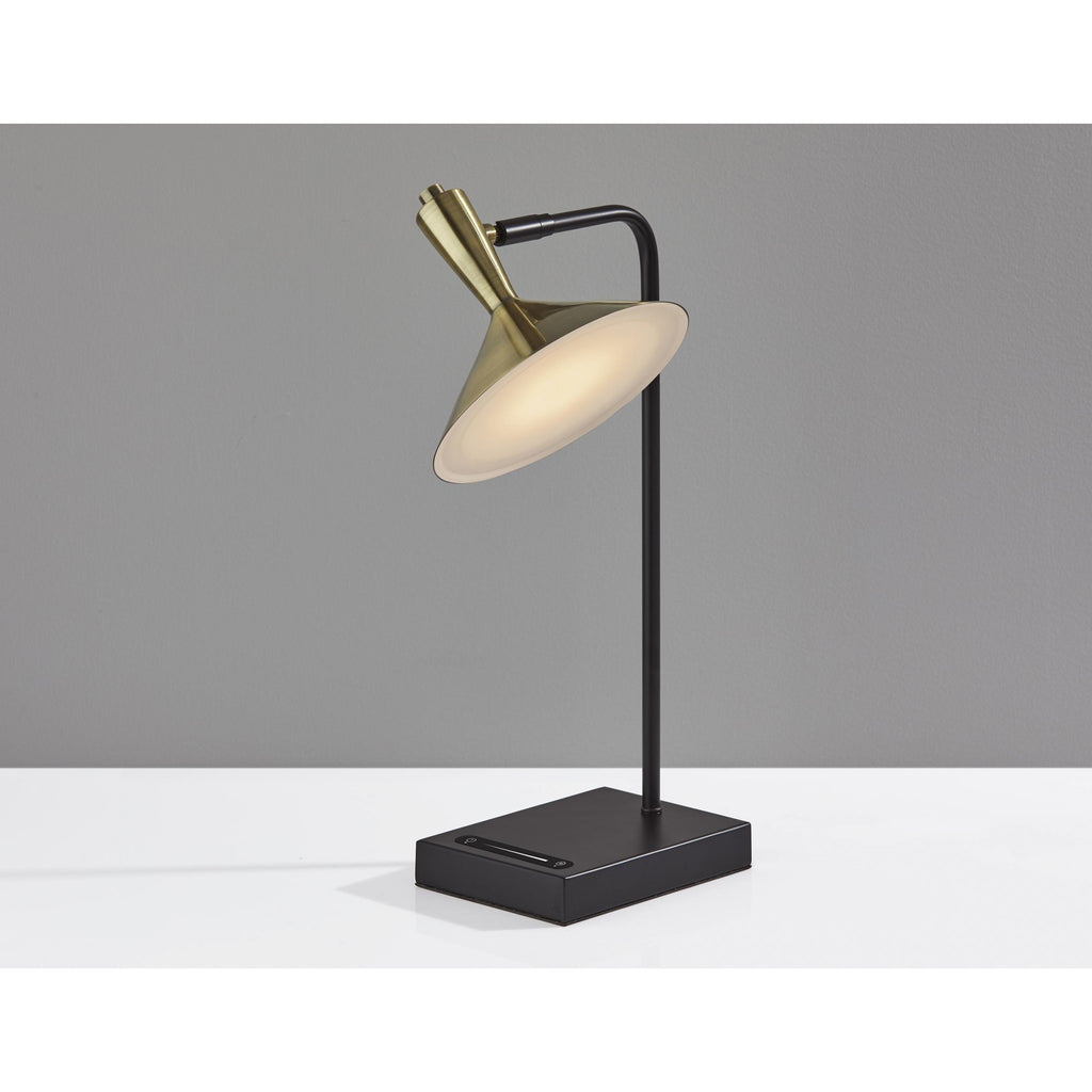 This Spotlight LED Desk Lamp is a high power and high-tech lamp with a mid-century modern style to highlight the tasks at your desk. Complete control of the light intensity and color allows you to customize the light to your needs at any time of the day. Whether you are working, reading, or relaxing, the 5 light color temperature modes provide you with various options to suit your environment and mood. The color of the light is controlled by a sleek touch switch located on the base, which is also used to adjust the light intensity offering a full range of brightness options. A matte black finish mixed with antique brass accents elevates the look. A convenient USB charging port located in the base lets you charge up your devices while you work. An adjustable shade allows for 400 lumens of flicker-free, energy-efficient LED light to reach any area of the workspace. All lighting product is either UL or ETL listed, meaning that it has been tested and approved to meet the government-regulated safety standards for the USA.