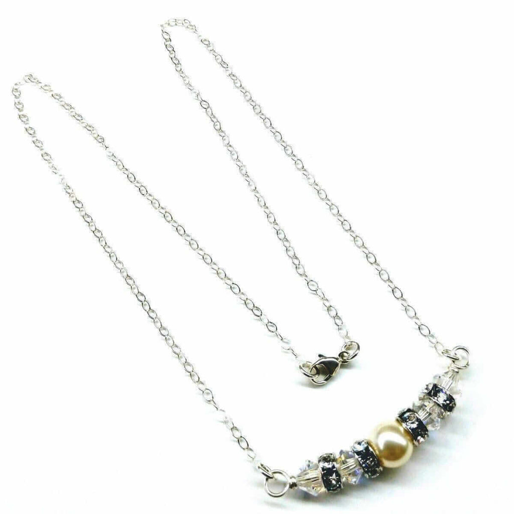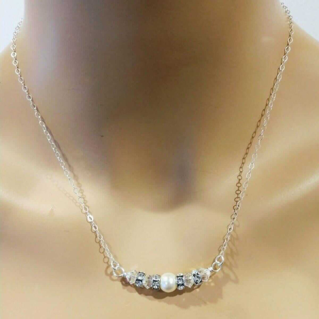 Silver Swarovski Crystal Pearl Bar Bridal Necklace