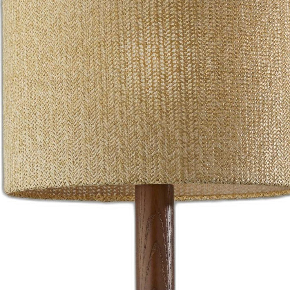 Bring of level of elegance and charm to your space with this good looking 24" solid wood tripod floor lamp with brown drum shade. This good looking lamp includes a wicker/rattan drum shaped shade. A sturdy three leg base gives this tripod style floor lamp a designer style that leans towards modern and industrial for a unique and stylish look. The light that this lamp throws is soft and warm to elevate the look of most any space in your home. Bring some lite and good vibes into your space with this updated and stylishly designed lamp. 23.5" H x 13" W x 13" D