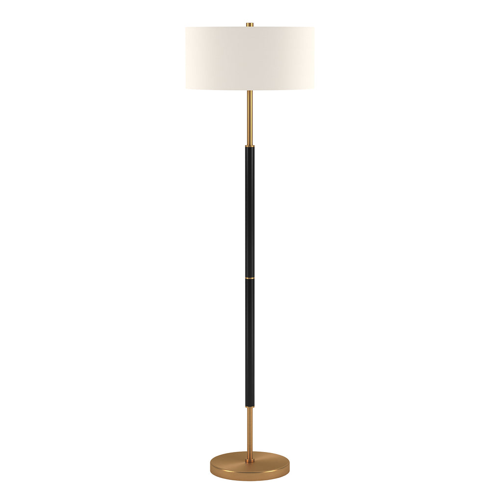 61" Black and Brass Two Light Floor Lamp With White Drum Shade