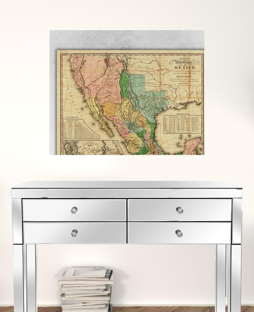 The vintage 1846 map of mexico unframed print wall art is the perfect decorative accessory for your home. This print is a visual artistic expression that allows you to decorate your space in style. Unframed, this flat poster art has a fresh and distinct taste to grace your walls with style. Reproduced for you on paper, this hanging decorative accent will be a trendy and fashionable way to dress your walls. Adding this hanging wall art to your space to make your room feel more finished and attractive. Instantly liven up your space with this art that brings color and dimension to your walls. 30 inches H x 24 inches W x 0.1 inches D