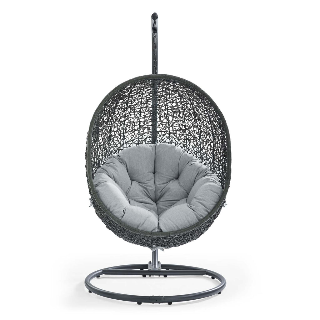 Escape to an exotic island of serenity with the Hide Outdoor Patio Swing Chair. Made with a luxurious synthetic rattan weave and plush all-weather fabric cushion, Hide Outdoor Hanging Chair makes it easy to immerse yourself in a good book. Hide Patio Swing Chair comes with a sturdy powder-coated steel frame and hanging chain apparatus that works well to enliven your patio, backyard, porch, or poolside dŽcor. Stand-alone swing hammocks are also popularly used in indoor lounge, living, or bedroom spaces. Hide Swinging Chair is weather and UV resistant. Set Includes: One - Cloak Swing Chair