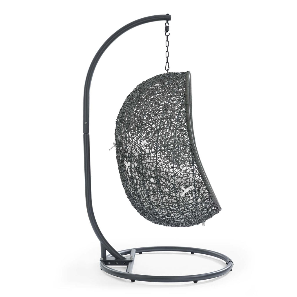 Escape to an exotic island of serenity with the Hide Outdoor Patio Swing Chair. Made with a luxurious synthetic rattan weave and plush all-weather fabric cushion, Hide Outdoor Hanging Chair makes it easy to immerse yourself in a good book. Hide Patio Swing Chair comes with a sturdy powder-coated steel frame and hanging chain apparatus that works well to enliven your patio, backyard, porch, or poolside dŽcor. Stand-alone swing hammocks are also popularly used in indoor lounge, living, or bedroom spaces. Hide Swinging Chair is weather and UV resistant. Set Includes: One - Cloak Swing Chair