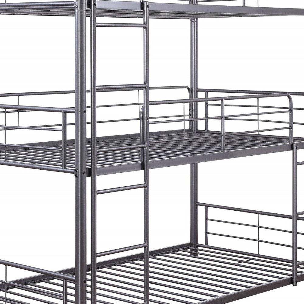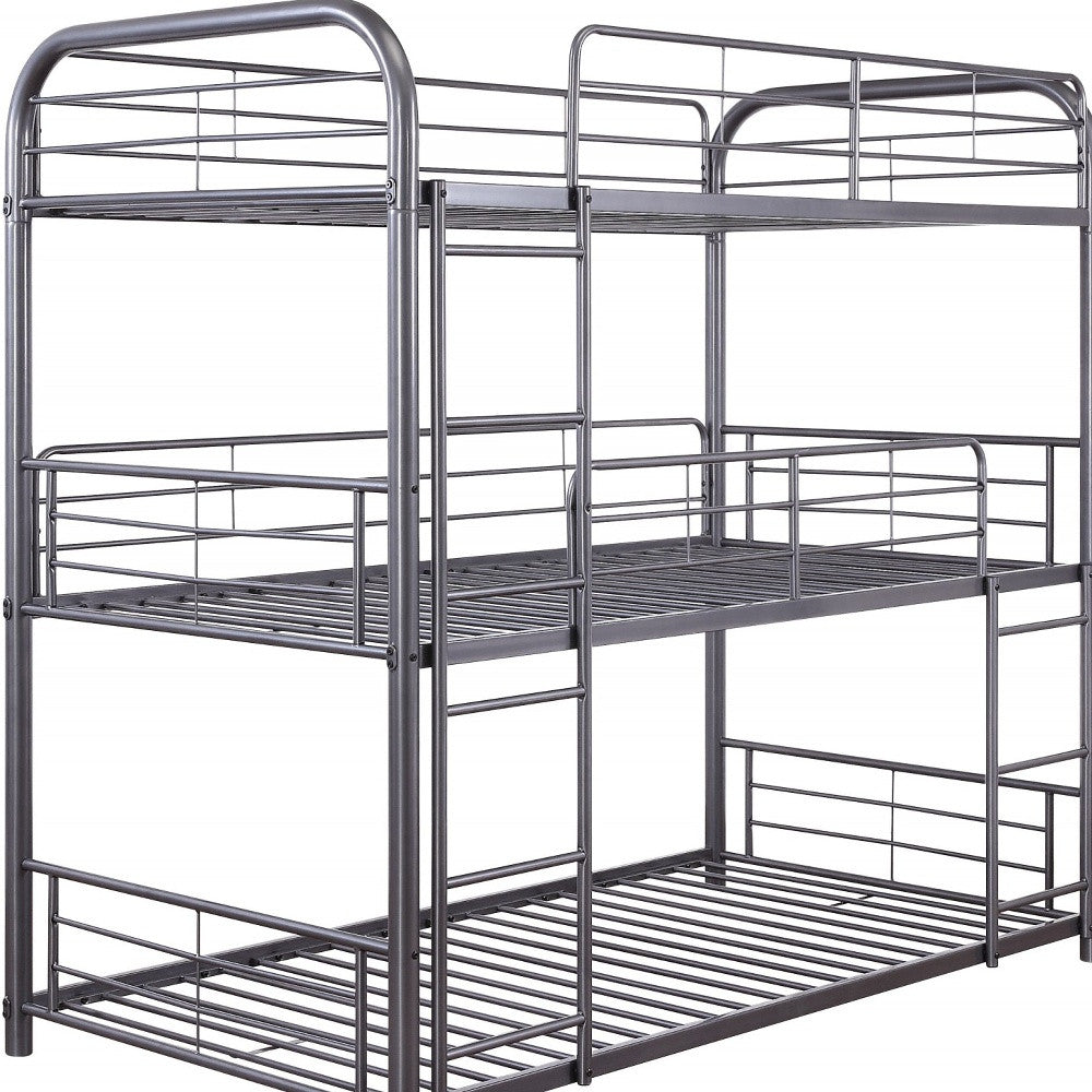 42" X 79" X 74" Gunmetal Metal Triple Bunk Bed - Twin