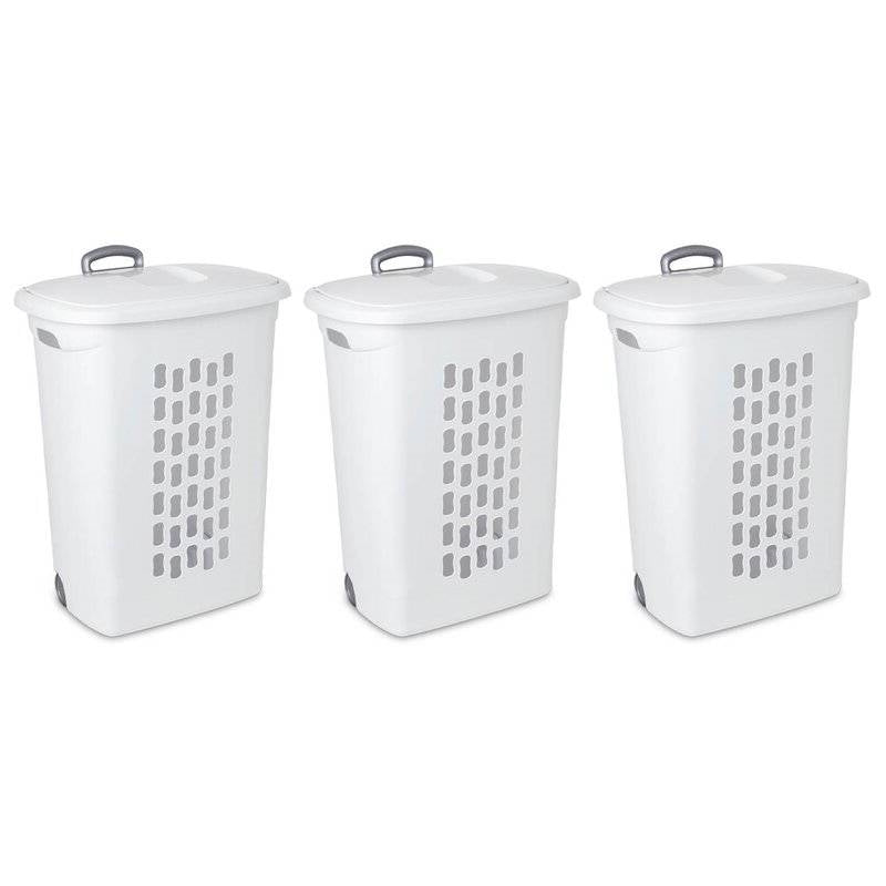 Set of 3 Laundry Hamper Dirty Clothes Baskets with Lids with Roller Wheels