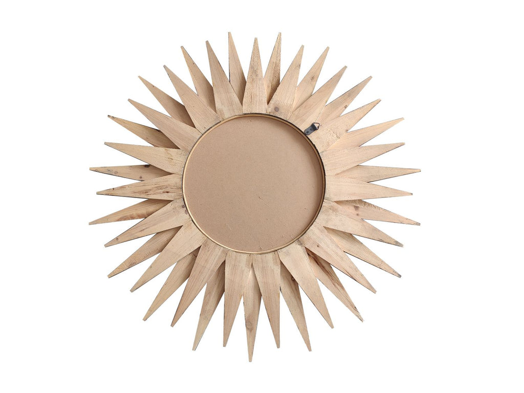 If you want to add some brightness to your living space, the 30-inch brown sunburst accent wood mirror is perfect for you. A unique sunburst shaped wood frame surrounds the round mirror to give this piece lots of dimension and depth. Its rustic style makes this mirror a favorite for bringing some flair to your decor. This unique rustic mirror will look great as part of your existing wall decor or you can use it as a statement piece anywhere in your home. 30-inch H x 1-inch W x 30-inch D