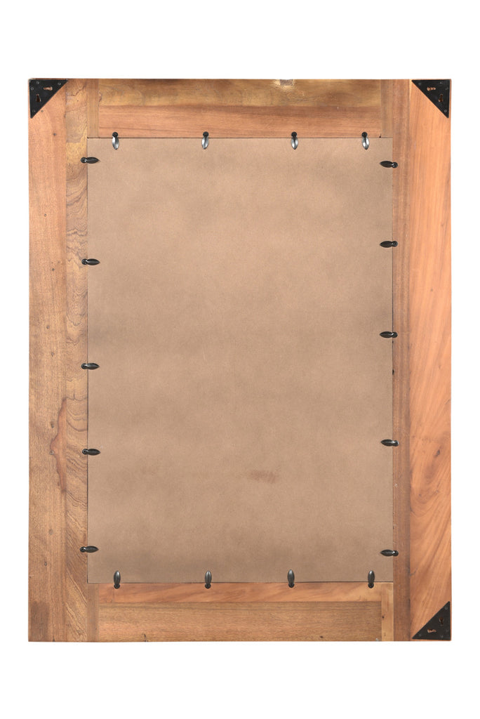 If you want to add some brightness to your living space, the 48-inch brown reclaimed wood geometric faceted framed accent mirror is perfect for you. The rectangle shaped mirror is surrounded by a geometric faceted wood frame that adds a nice touch of depth and texture. Its rustic and distressed styling makes this mirror a favorite for bringing some flair to your decor. 48-inch H x 36-inch W x 1.5-inch D