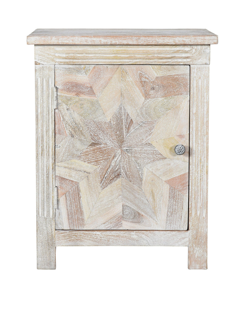 28" Distressed White Starburst Geometric Solid Wood Nightstand