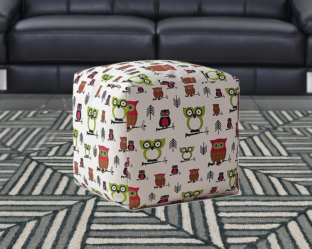 Get ready to relax with this 17" pink and white cotton owls pouf cover. Expertly upholstered with padding and soft cotton in a owls pattern, this ottoman is as comfortable as it is good looking. Ottomans are multi-functional additions to your space that add fashion and practical value. 17" H x 17" W x 1" D