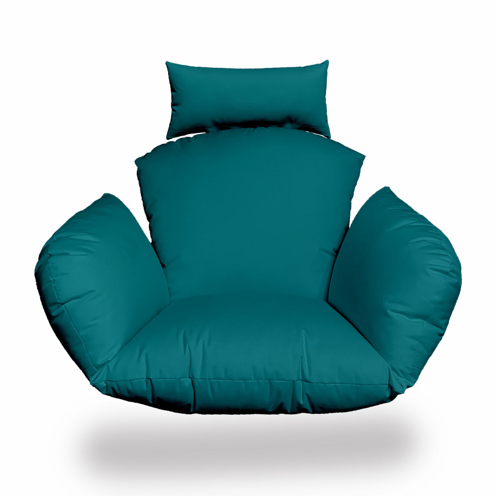 Give your favorite chair an instant make-over with this Primo Teal Indoor Outdoor Replacement Cushion for Egg Chair. Designed for indoors or out, this super-soft cushion is engineered to fit an Egg Chair, Papasan Chair, or Cocoon style chair. The headrest has ties so you can adjust for comfort. It will fit most cocoon chairs with a seat between 18-22" wide and 18-22" deep. This luxury replacement cushion is just what you need for the ultimate comfort. 36" x 40" x 7".
