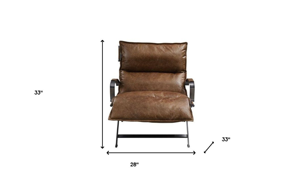 28" Brown Top Grain Leather And Steel Lounge Chair