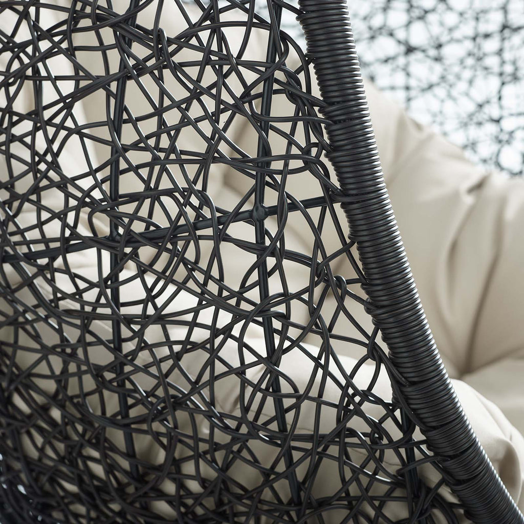 Escape to an exotic island of serenity with the Encase Outdoor Patio Swing Chair. Made with a luxurious synthetic rattan weave and plush all-weather fabric cushion, Encase Outdoor Hanging Chair makes it easy to immerse yourself in a good book. Encase Patio Swing Chair comes with a sturdy powder-coated steel frame and adjustable 78.5� inch steel chain that works well to enliven your patio, backyard, porch, or poolside d�cor. Stand-alone hanging swing chairs are also popularly used in indoor lounge, living, or bedroom spaces. Hide Swinging Chair is weather and UV resistant. Set Includes: One - Encase Swing Lounge Chair Without Stand