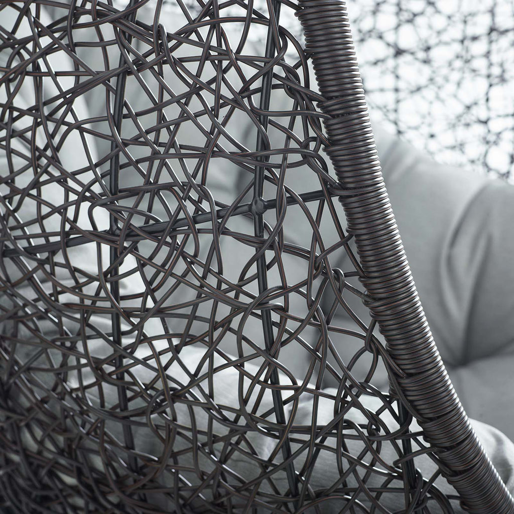 Escape to an exotic island of serenity with the Encase Outdoor Patio Swing Chair. Made with a luxurious synthetic rattan weave and plush all-weather fabric cushion, Encase Outdoor Hanging Chair makes it easy to immerse yourself in a good book. Encase Patio Swing Chair comes with a sturdy powder-coated steel frame and adjustable 78.5� inch steel chain that works well to enliven your patio, backyard, porch, or poolside d�cor. Stand-alone hanging swing chairs are also popularly used in indoor lounge, living, or bedroom spaces. Hide Swinging Chair is weather and UV resistant. Set Includes: One - Encase Swing Lounge Chair Without Stand