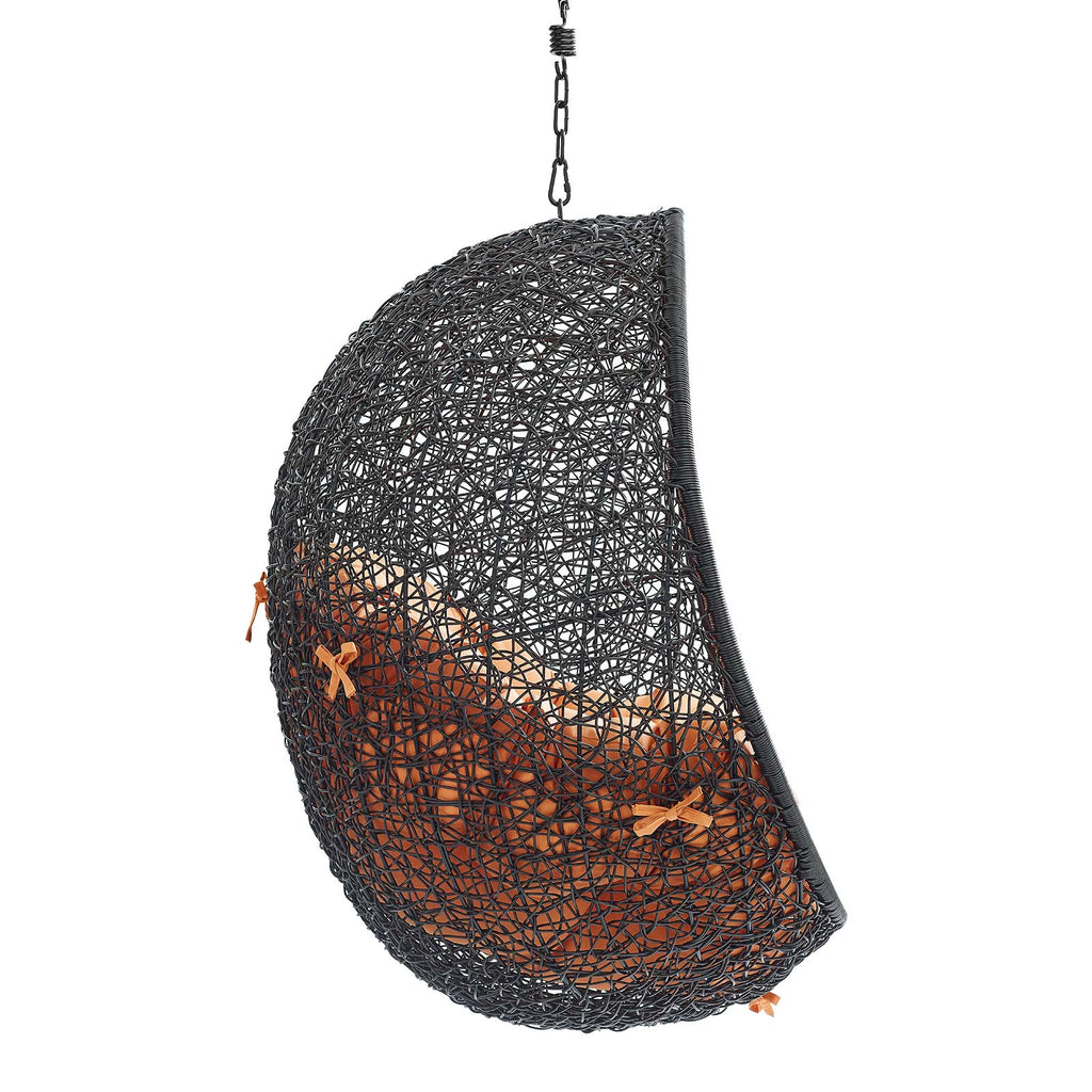 Escape to an exotic island of serenity with the Encase Outdoor Patio Swing Chair. Made with a luxurious synthetic rattan weave and plush all-weather fabric cushion, Encase Outdoor Hanging Chair makes it easy to immerse yourself in a good book. Encase Patio Swing Chair comes with a sturdy powder-coated steel frame and adjustable 78.5� inch steel chain that works well to enliven your patio, backyard, porch, or poolside d�cor. Stand-alone hanging swing chairs are also popularly used in indoor lounge, living, or bedroom spaces. Hide Swinging Chair is weather and UV resistant. Set Includes: One - Encase Swing Lounge Chair Without Stand