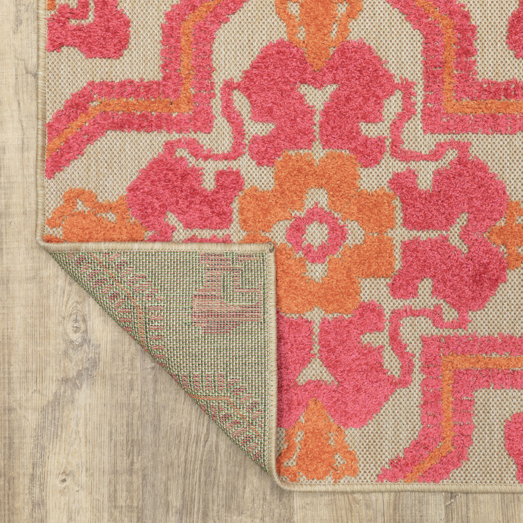 2' x 3' Beige and Black Floral Stain Resistant Indoor Outdoor Area Rug