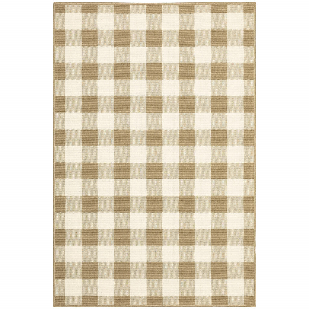 2' X 4' Gray and Ivory Geometric Stain Resistant Indoor Outdoor Area Rug