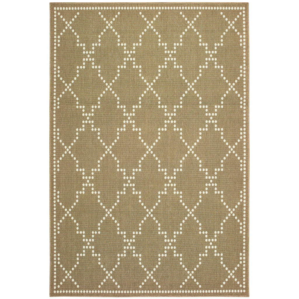 2' X 4' Tan Geometric Stain Resistant Indoor Outdoor Area Rug