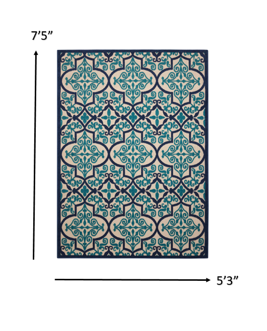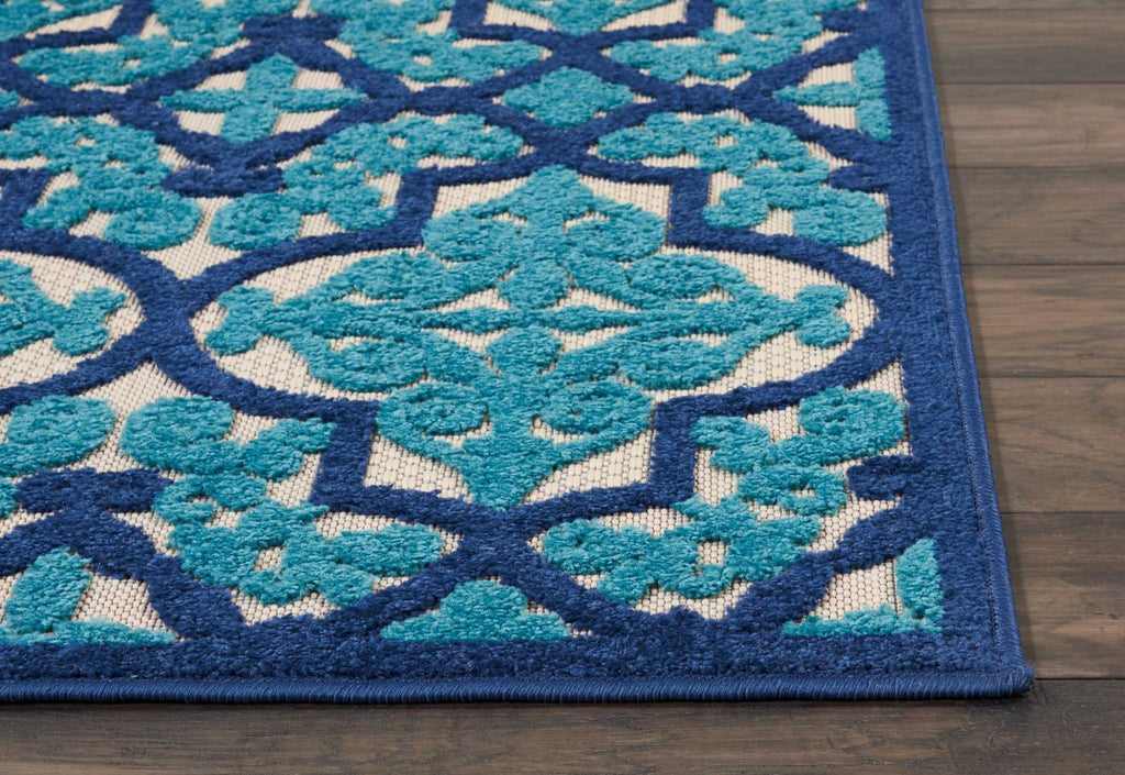 Add some artistry to your room with this 3' x 4' blue and ivory moroccan indoor outdoor area rug. This rectangle shaped rug features a moroccan design in blue and ivory to give it visual interest. A classic shape marries with good looking design for your space Made in Turkey, this rug offers high quality combined with good looking designer sensibilities. Place this area rug against a hardwood or tile floor and it will enliven your living space with style and sophistication. 1" H x 32" W x 48" D