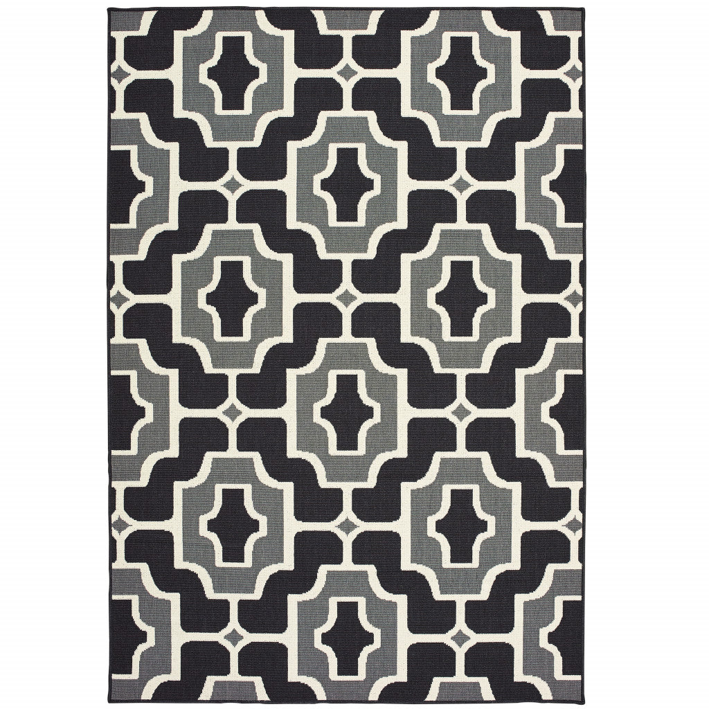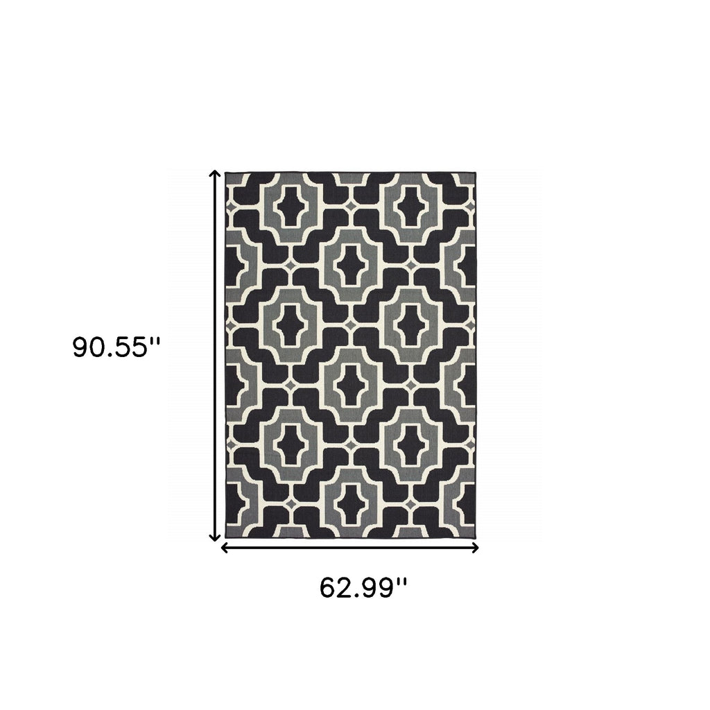 5' x 8' Black and Gray Geometric Stain Resistant Indoor Outdoor Area Rug