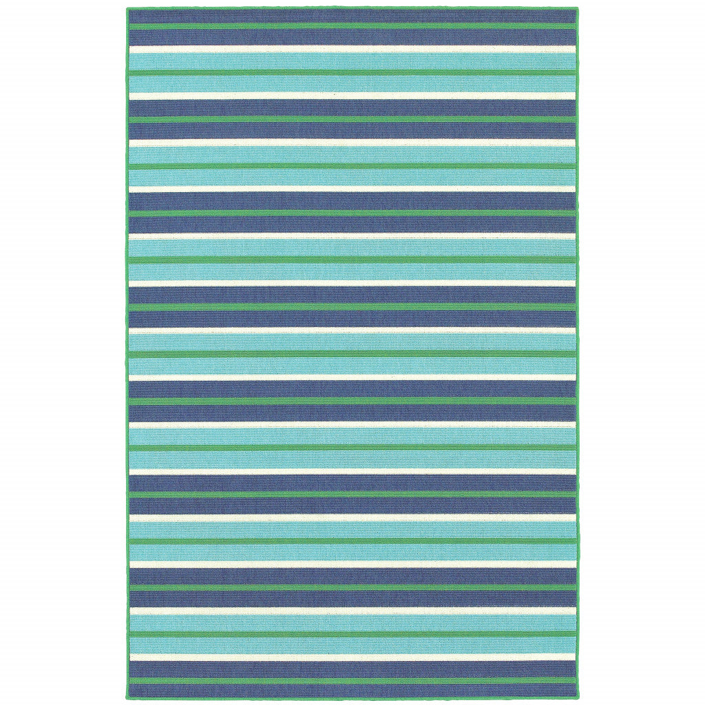 5' x 8' Blue and Green Geometric Stain Resistant Indoor Outdoor Area Rug