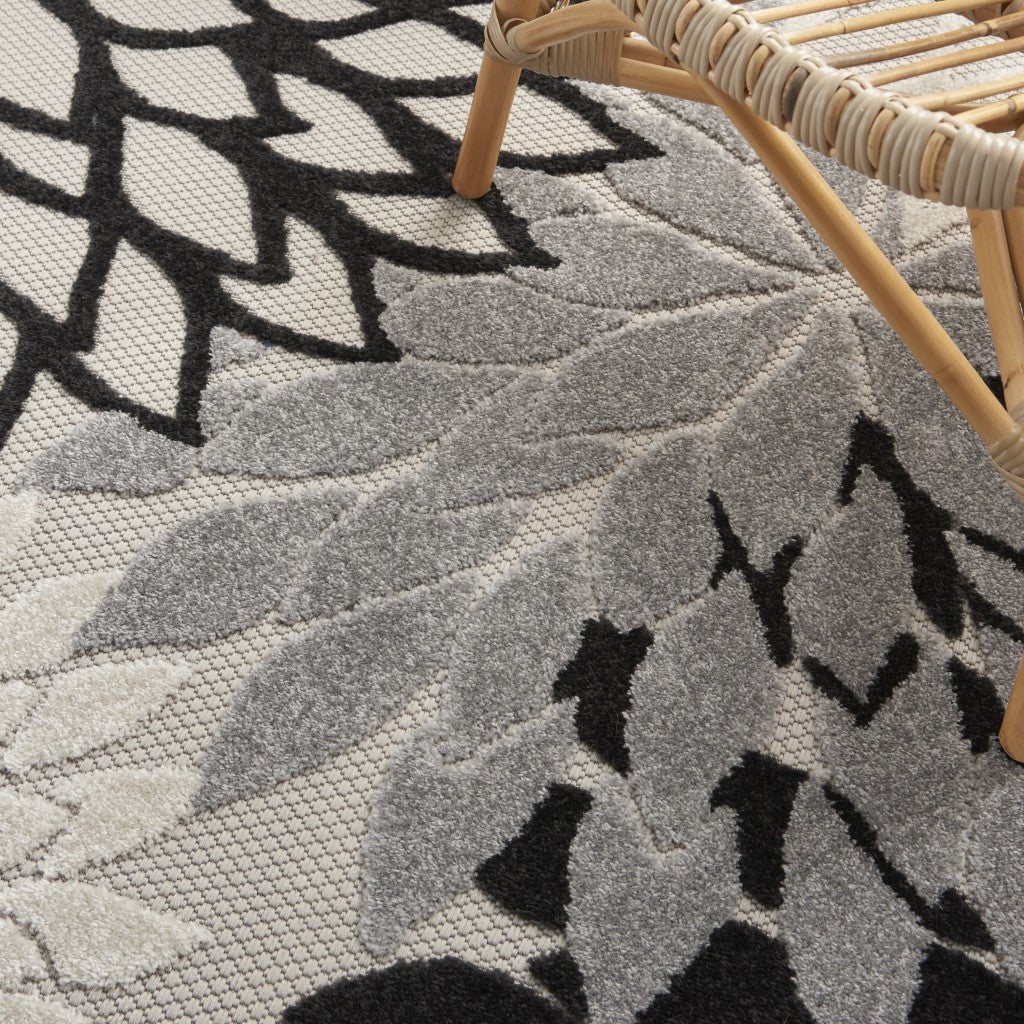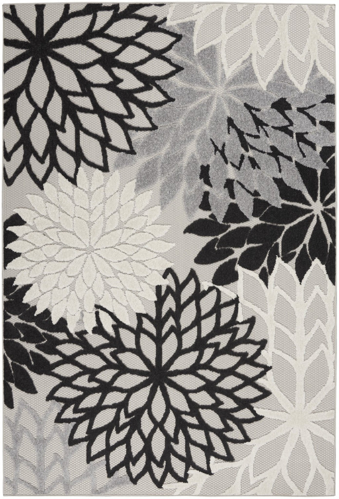 6' X 9' Black And White Floral Indoor Outdoor Area Rug