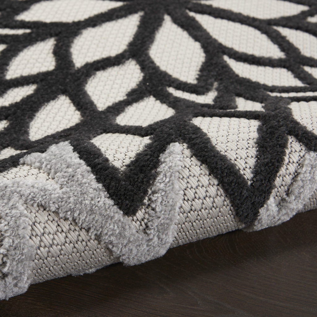 Set an inviting tone in your space with this 6' x 9' black white floral indoor outdoor area rug. This rectangle shaped rug features a floral design in black white to give it visual interest. A classic shape marries with good looking design for your space Made in Turkey, this rug offers high quality combined with good looking designer sensibilities. Place this area rug against a hardwood or tile floor and it will enliven your living space with style and sophistication. 1" H x 72" W x 108" D