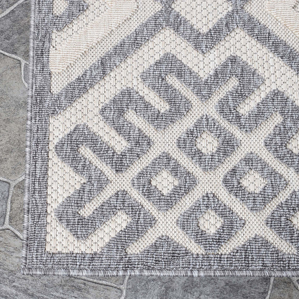 Add some artistry to your room with this 7' x 9' cream geometric stain resistant non skid indoor outdoor area rug. This rectangle shaped rug features a geometric design in cream to give it visual interest. A classic shape marries with good looking design for your space The coloring of this rug adds a delightfully neutral tone to your home and will easily match with most any decor. Made in Turkey, this rug offers high quality combined with good looking designer sensibilities. Ideal for spaces with kids and pets, this rug is stain resistant to help repel stains and spilled liquids. Area Rugs help to give warmth and sense of home to your space. 0.24" H x 85.2" W x 109.2" D